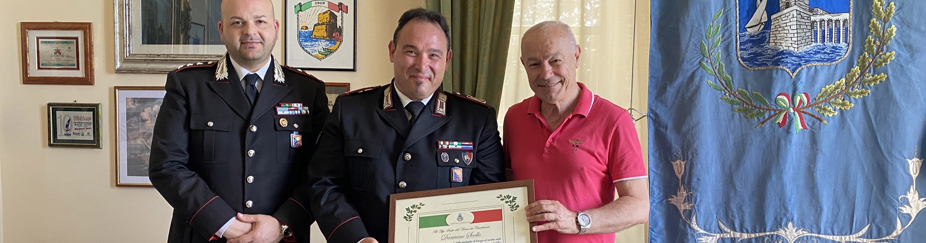 Pergamena di ringraziamento all'Appuntato scelto Damiano Scollo dell'Arma dei Carabinieri.